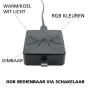 Die Lichtfarbe zeigt dir, welche Farbe das Licht der Beleuchtung ausstrahlt: weiß, farbig oder UV. Für viele Produkte in unserem Sortiment ist dies weiß, erhältlich von sehr warmweiß bis Tageslichtweiß (ausgedrückt in Kelvin). Bei farbigem Licht hast du zwei Optionen: 1. Eine feste Farbe, wie Rot oder Grün. 2. RGBW, was bedeutet, dass du jederzeit die Farbe des Lichts selbst bestimmen kannst: weiß oder farbig.