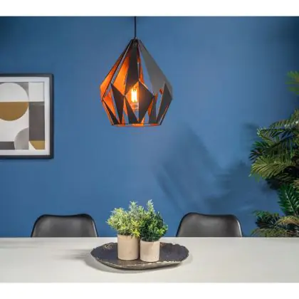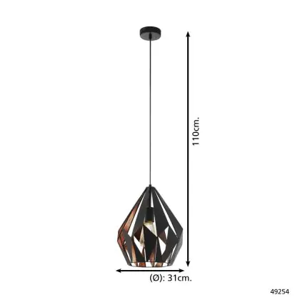 Die Eglo Pendelleuchte Carlton 1 Schwarz, Bernstein | Geeignet für E27 sorgt für eine angenehme Ausleuchtung und punktet durch modernes Design. Diese Leuchte ist speziell zur Montage an der Decke vorgesehen.