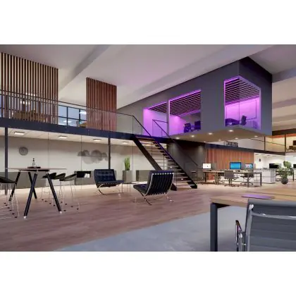 Der Deckenstrahler ist mit einem Blendwert von UGR <19 ausgezeichnet. Dies bedeutet, dass er nahezu blendfrei ist und sich ideal für Büros oder Schulen eignet.
