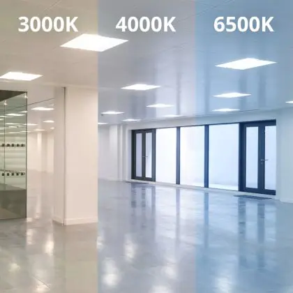 Das LED-Panel kommt mit der Farbtemperatur 3000K - Warmweiß daher. Als Faustregel gilt: Je niedriger der Kelvinwert, desto gemütlicher wirkt das Licht.