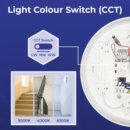 Die Noxion LED-Wand- und Deckenleuchte Corido V2 Weiß 12/16/20W 2000lm 830-840-865 CCT | IP44 ist eine Feuchtraumleuchte. Sie strahlt Licht in der Farbtemperatur aus und punktet durch eine lange Lebensdauer. Diese Leuchte ist speziell zur Verwendung in Feuchträumen (Keller, Waschräume, etc.) vorgesehen.
