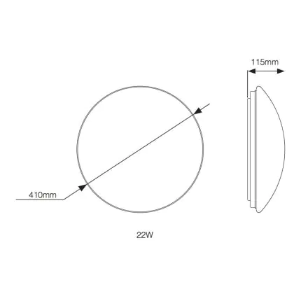 Die Noxion LED-Bulkhead der Reihe Corido hat einen Durchmesser von 410 mm und ist 115 mm tief. Sie ersetzt zwei Leuchten mit je 26 W, verbraucht selbst aber nur 1x 22 Watt – Sie sparen also mehr als die Hälfte Ihrer bisherigen Stromkosten ein. Das Produkt ist IP44-klassifiziert und auch als Außenbeleuchtung geeignet.