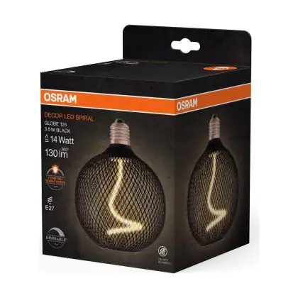 Die Osram Decor Spiral E27 Globe Fadenlampe Klar 3.5W 130lm - 818 Extra Warmweiß | Dimmbar - Ersatz Für 15W ist eine effiziente E27 LED-Lampe mit Retrodesign und der perfekte Ersatz für Ihre konventionellen 15W Lampen mit E27. Zudem strahlt sie Licht in der Farbtemperatur 1800K - Extra Warmweiß aus und punktet durch eine lange Lebensdauer.