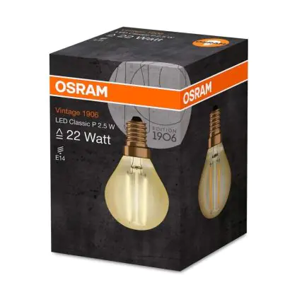 Die Osram Vintage 1906 LED ist eine LED-Lampe im Retro-Design. Sie hat einen geringen Energieverbrauch, eine lange Lebensdauer und zudem einen ansprechenden Look dank ihrer Filamente. Zudem spendet sie Licht in der Farbtemperatur extra Warmweiß.