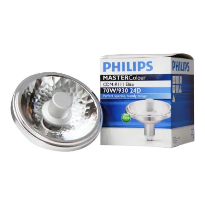 Die Philips MASTERColour GX8.5 CDM-R111 Elite 70W 24D - 930 Warmweiß | Höchste Farbwiedergabe ist eine Gasentladungslampe von Philips. Das Produkt mit einem GX8.5 Sockel strahlt Licht in der Farbtemperatur 3000K - Warmweiß aus und punktet durch eine lange Lebensdauer.